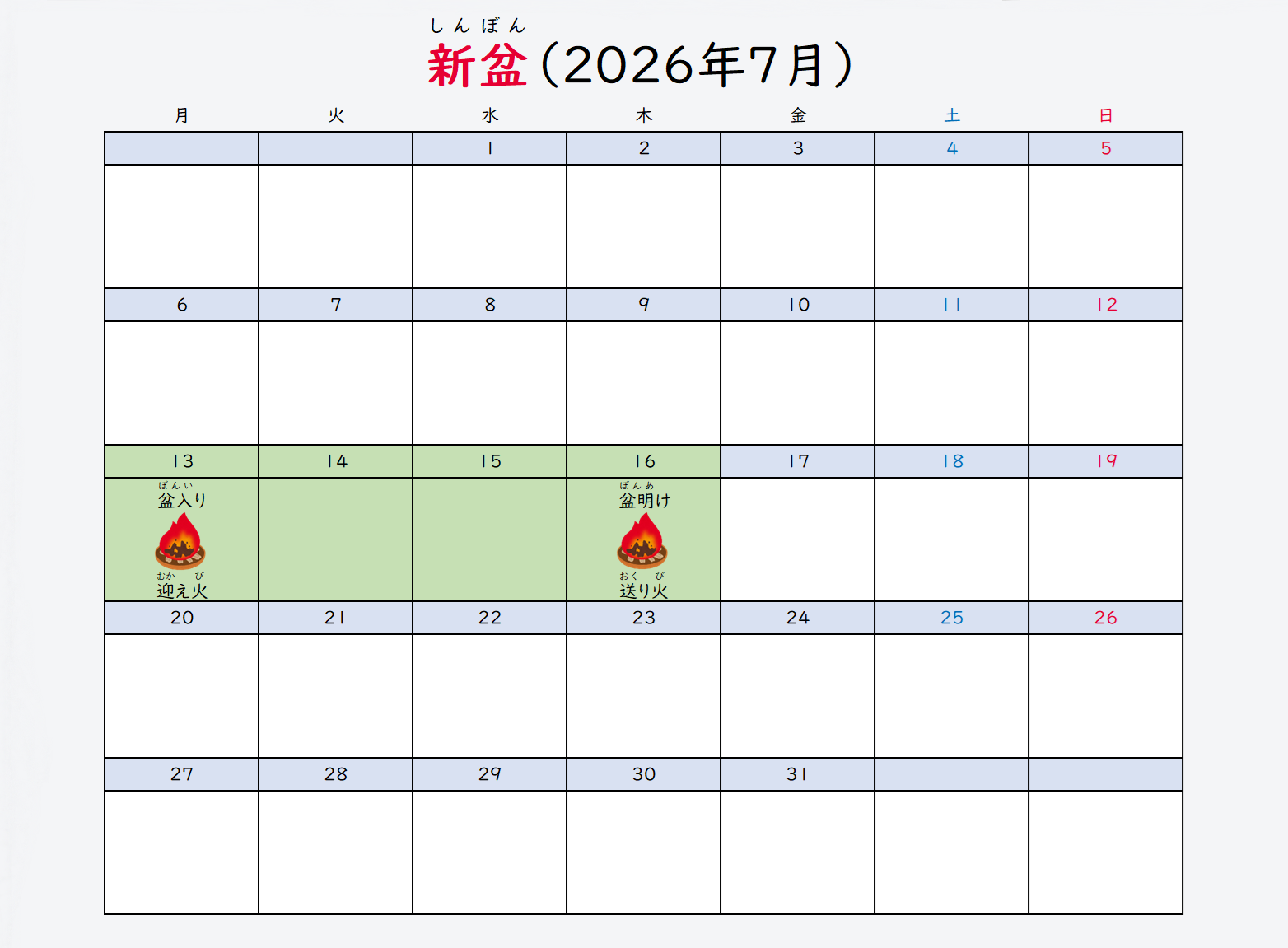 かんきゅうれき7月13日-7月15日(盂蘭盆節期間)