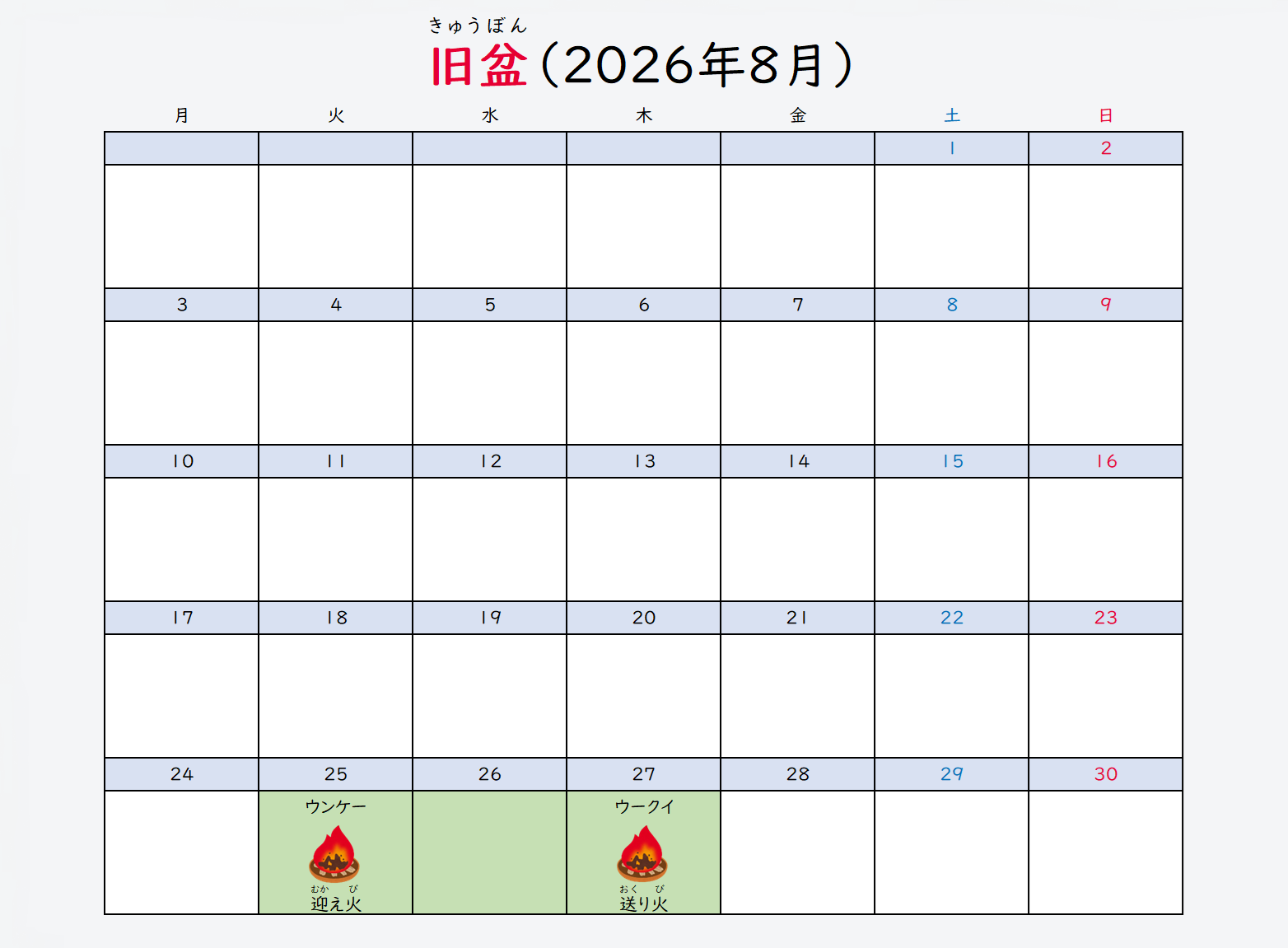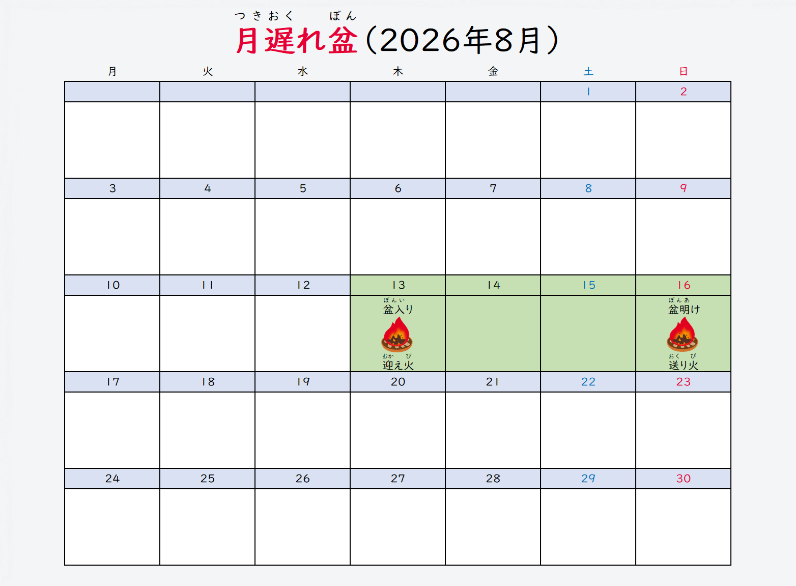 かん:8月13日-8月16日(盂蘭盆節期間)